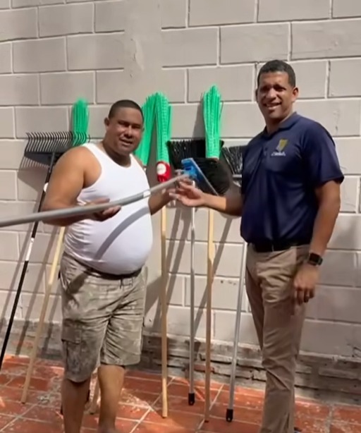Nos ha entregado escobas especiales y materiales de limpieza de alta resistencia, con una vida útil estimada de hasta 2 años, que sin duda fortalecerán nuestro trabajo diario de mantenimiento y limpieza. Con un buen uso, esperamos que nos duren incluso más.